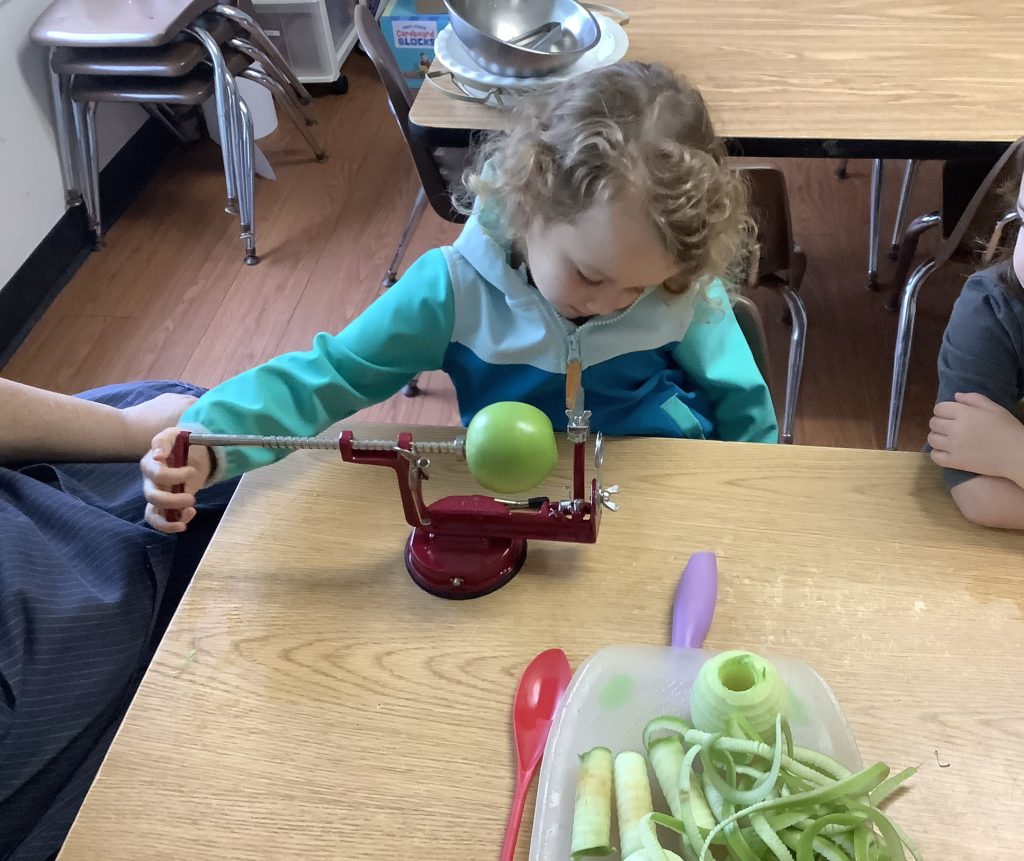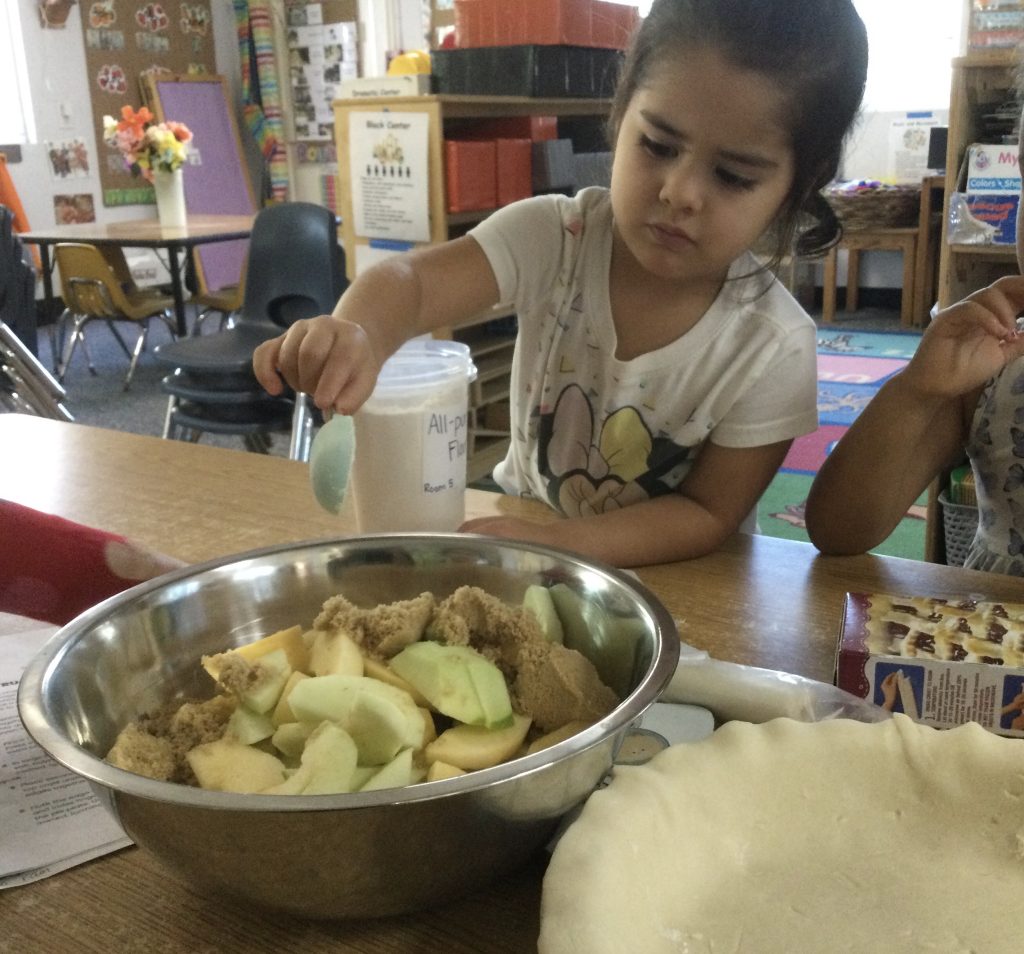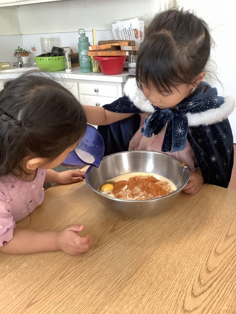 To celebrate the season, our TK and preschool classrooms baked pumpkin and apple pies. They practiced measuring, pouring, mixing, and learning about ingredients and sequence like real bakers! Cooking in the classroom turns everyday activities into rich learning moments, building early math, language, and teamwork skills. And of course, they loved tasting their warm fall treats!
